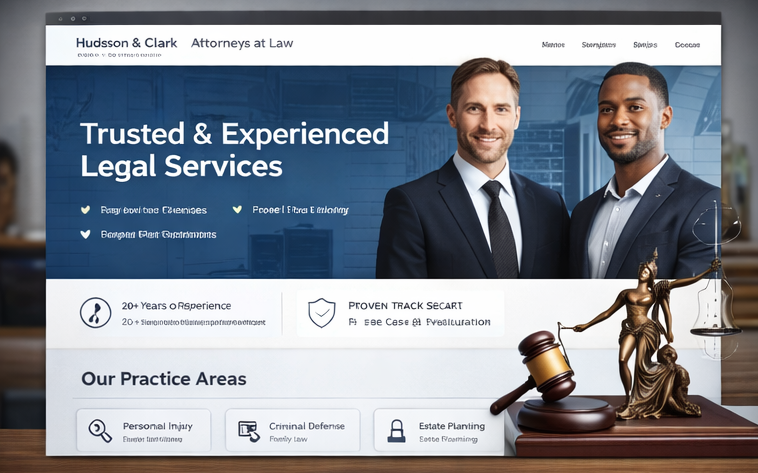 Presencia digital profesional para tu firma legal: servicios, equipo y contacto con imagen de confianza y autoridad.